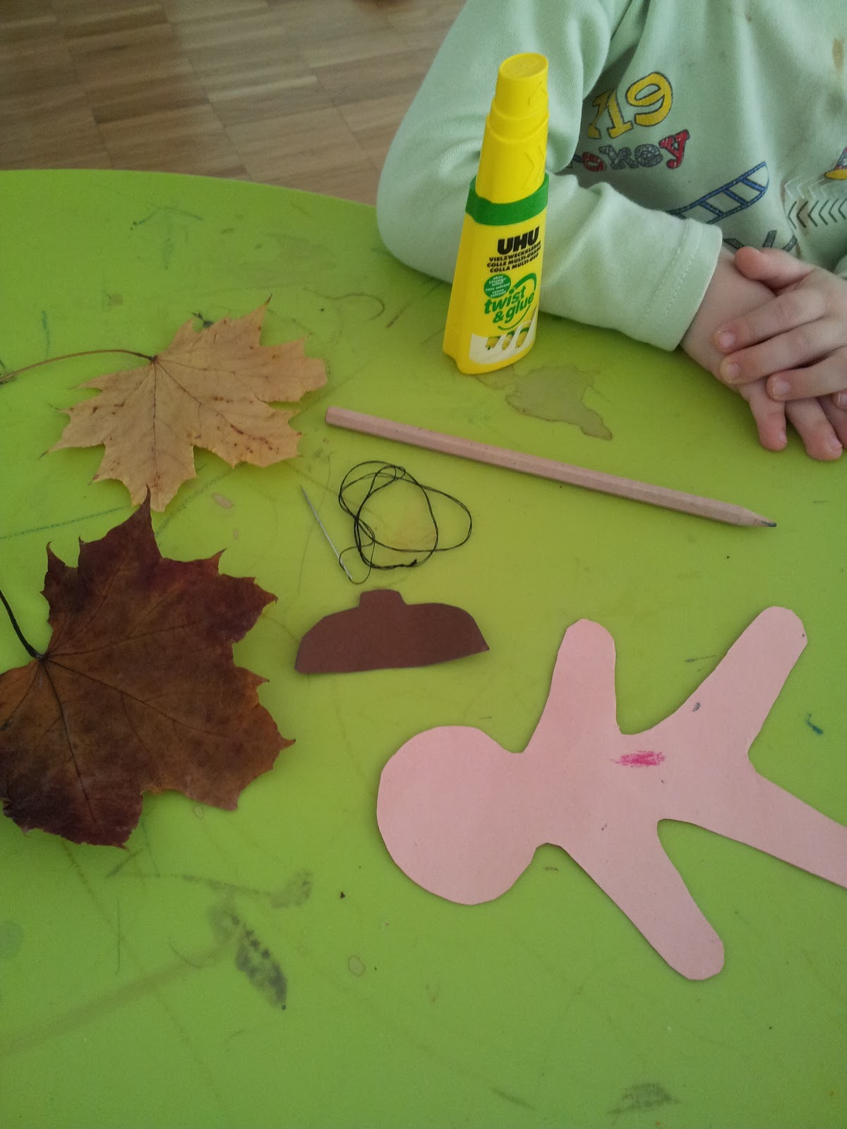 Yapılısı: ten rengine benzer bir kartondan adam sekli cizilip kesilir ustune baska bir renkten sapka cızılıp kesılıp adamın bas kısmına yapıstırılır. adamın onune ve arkasına da kurutulmus yapraklar yapıstırılır. biz yapıstırırken adama yapraktan elbise giydiriyoruz dedik. adamın yuzu cızıldıkten sonra sapka kısmında ıgneyle ıplık gecırılerek balkonda ya da dısarda tavana ya da yuksek bir yere asılır ruzgar geldıkce ruzgarla birlikte donerek dans eder.